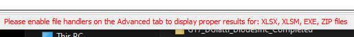 I was searching for a string that I knew could show up in text files (*.log and others) as well as xlsx. The error messages about THOSE files didn't make sense, nor should I have to edit a registry to use a program. The red error message (attachment) implied that there were problems with the handlers.