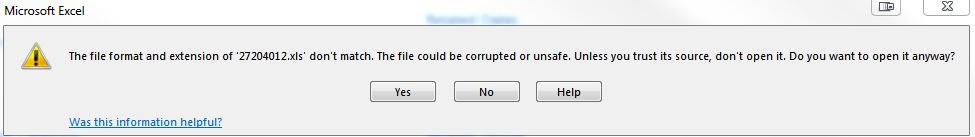 Excel 2013 when opening the file does warn it may be corrupt, but opens them just fine after clicking OK, or if you repair the file. Other searching indicates the file may have been renamed from .xlsx to .xls so you get the error, or to use open or Open and Repair, then resave as .xlsx