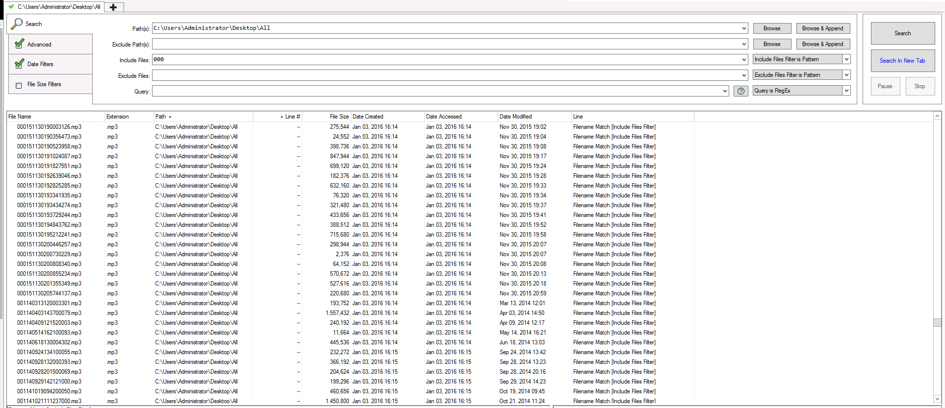 When I choose "Include Files Filter is RegEx" or "Include File Filter is Text Query" Wrong result appear