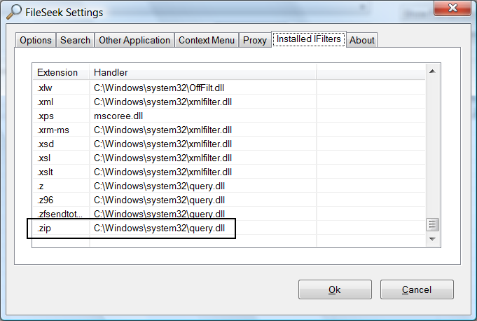 When I saw this post, I tried searching for text file names (not text in text files) in a .zip file without success. IFilters is showing the ZIP extension (see attached). The "Load and process files using IFilters (slow)" is checked.