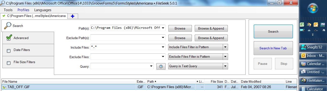 Could I suggest in next version reducing the Advanced and Date Filters boxes width, removing white space from between the Search and Path(s), remove white space between Browse and Append and Search boxes, reducing the width of the Search button box, and put the horizontal space gained into a wider Path(s) box?